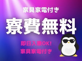寮は家具家電付き・初期費用不要。