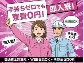 | 応募方法 | 【気軽に始められる5ステップ】 1. 応募 2. 担当よりご連絡 3. お仕事についてご案内 4. 入寮(希望者のみ) 5. お仕事スタート! 質問だけでもOK!お気軽にどうぞ。 【会社所在地】 〒541-0054 大阪市中央区南本町4-5-7東亜ビル5階 |